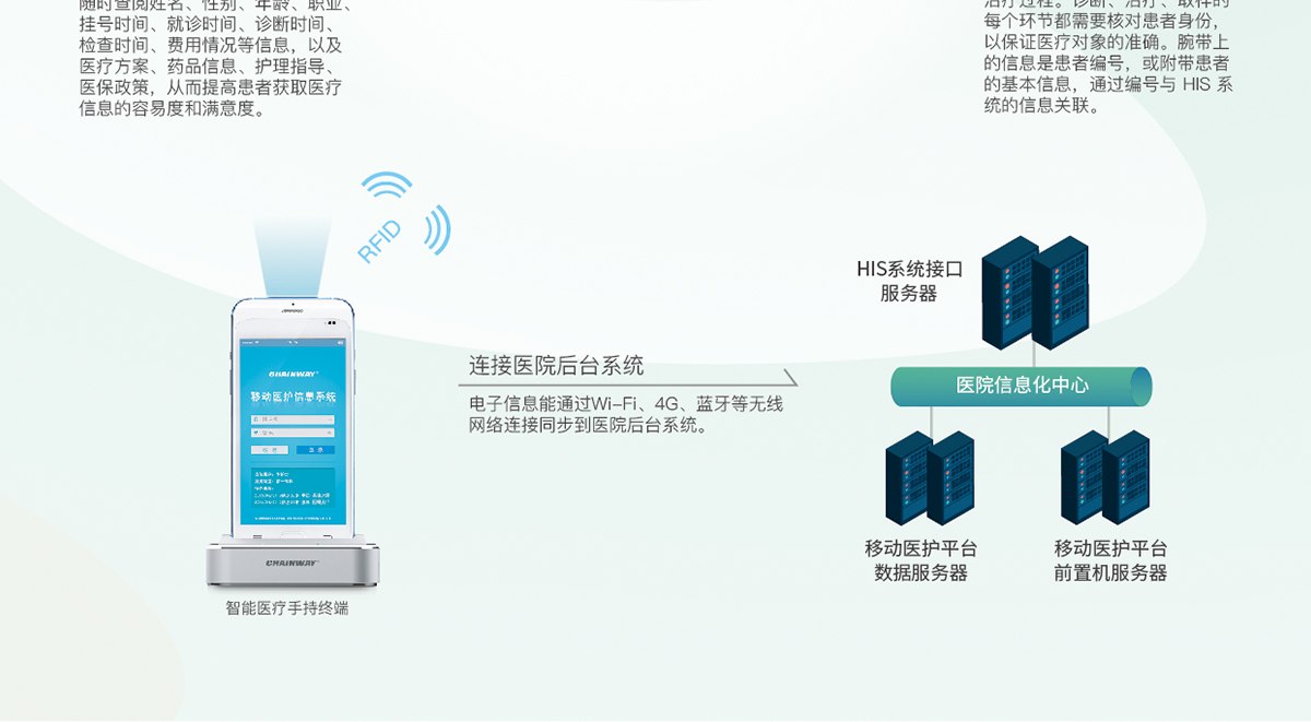 3)RFID腕带可以对腕带内信息进行加密,即使腕带丢失,也不会被其他人员读取识别,充分保护病人隐私。