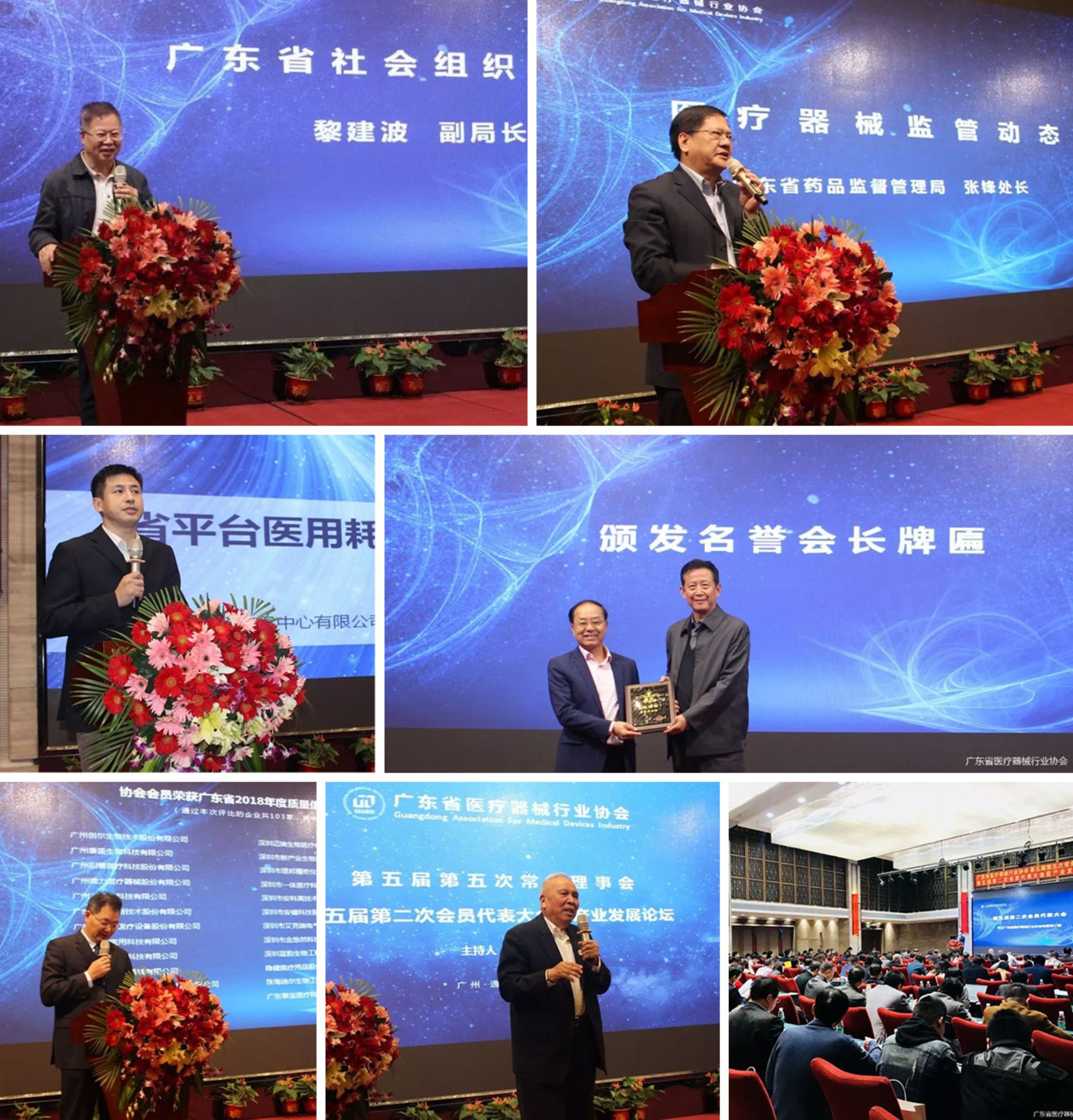 广东省医疗器械行业协会吴楚升会长代表协会致辞,对与会嘉宾领导及会员代表的到来表示欢迎及感谢,并就协会2019年工作情况及2020年工作计划做了汇报。会议还审议通过2019年新入会企业,听取 2019年财务报告,通报撤销口腔器材专业委员会决议,表决通过章程修订案、制度修订案,选举广州立白企业集团有限公司、广东省广州国际医药港有限公司董事长陈凯旋先生为名誉会长。广东省社会组织管理局黎建波副局长、广东省老区建设促进会陈开枝会长分别致辞,充分肯定协会目前取得的显著成绩,并就协会下步发展提出建设性意见。广东省委原常委、广东省军区原司令员刘联华将军为陈凯旋名誉会长颁发聘书。